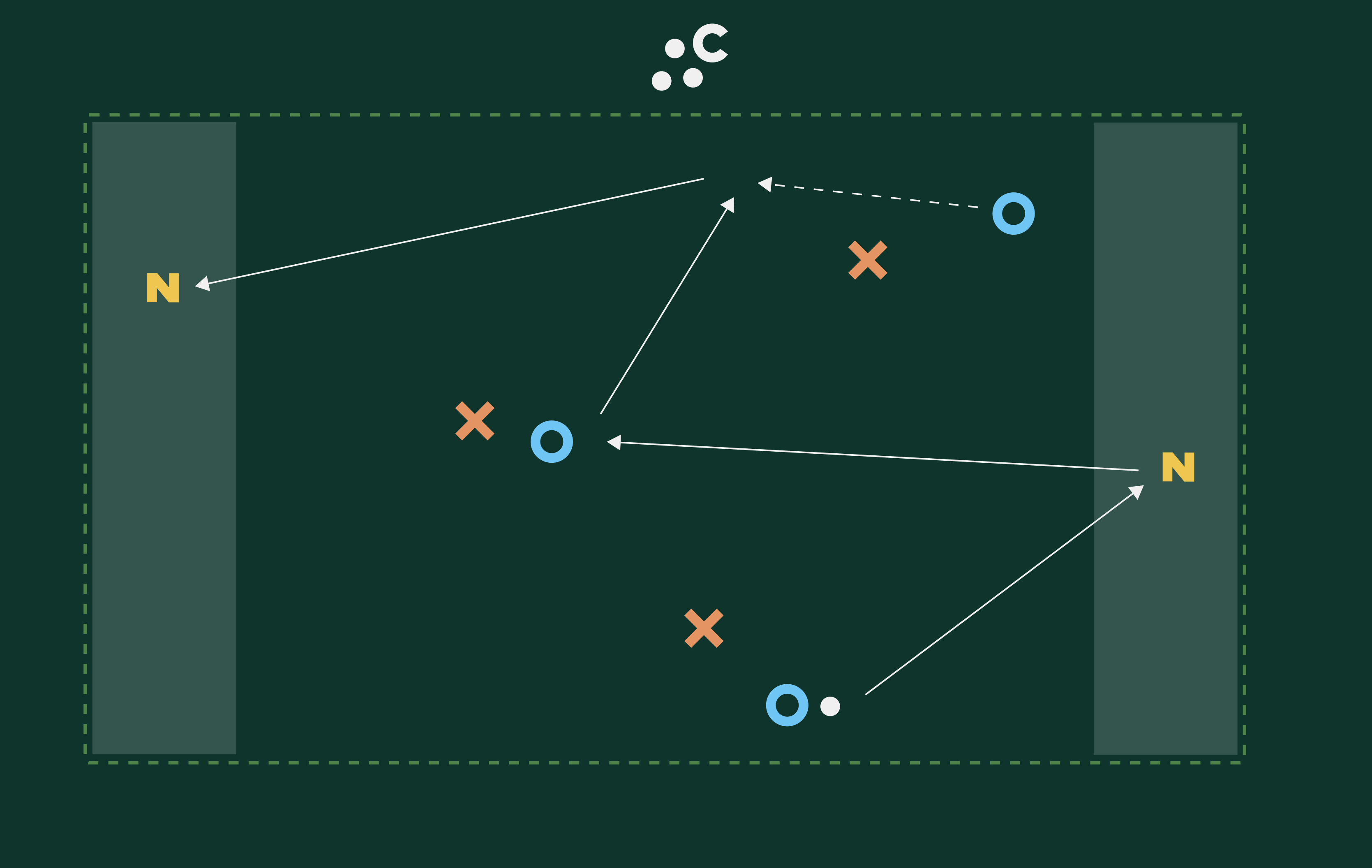 Die Anspieler N haben freie Kontakte in ihrer Zone, dürfen jedoch attackiert werden.